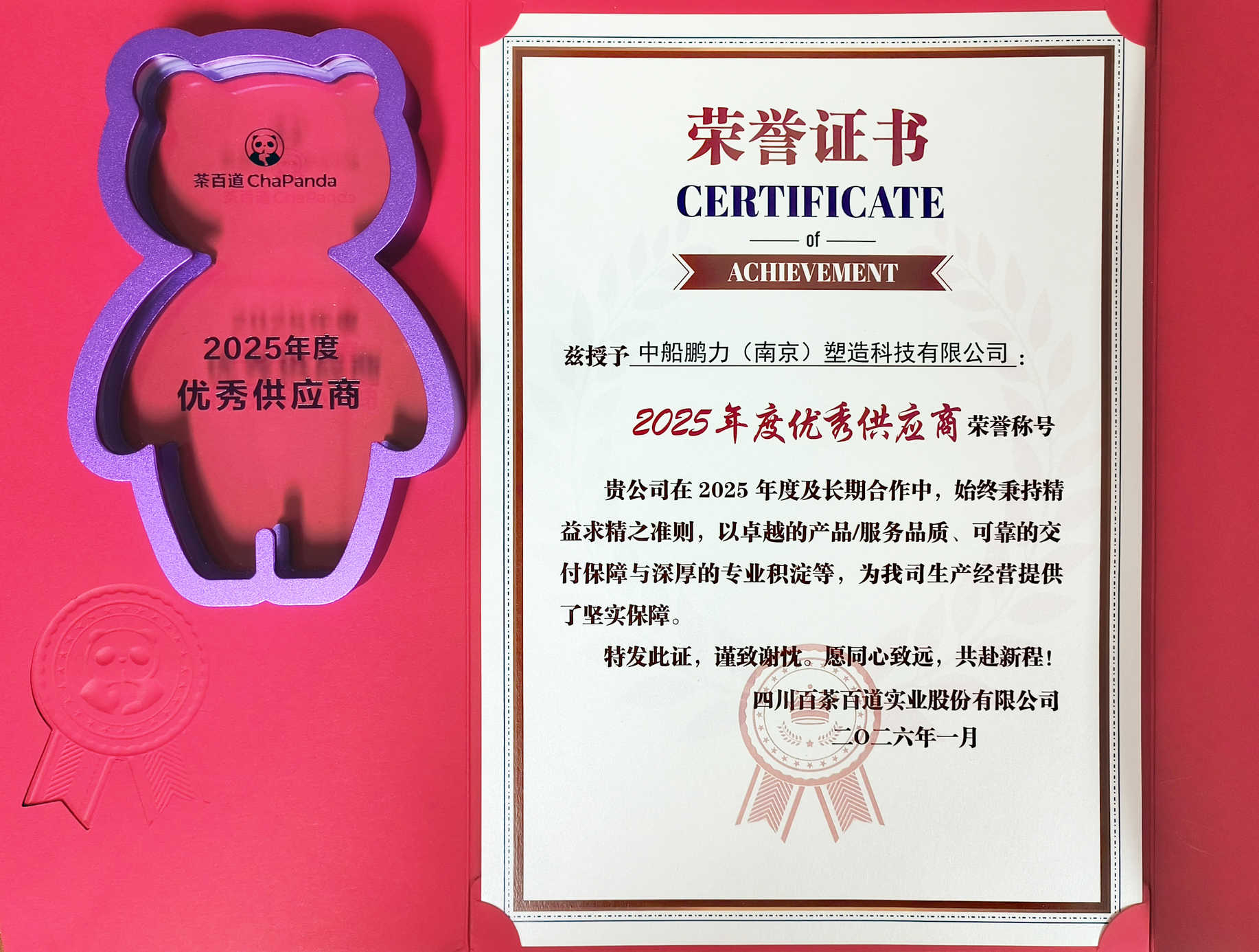近日,鹏力塑造凭借多元的居品品类、安适的供货才智及高效的处事水平,荣获茶百说念“2025年度优秀供应商”名称。
